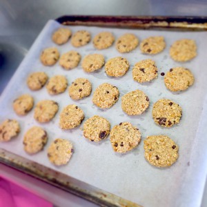 ②オーブンシートを敷いた天板に、クッキーの形に整えた①を並べます。