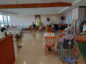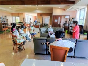 今日は、体験に来られているボランティアさんが、旦那さんのアコーディオンで唄われた。カナダの人なので通訳は、患者さんでアメリカで生活されていた男性にお願いした。時々、お子さんが飛び入りで邪魔しに入るというハプニングもあったが、楽しいコンサートでした。