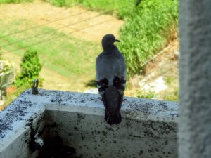 鳩も日陰を求めてかな?