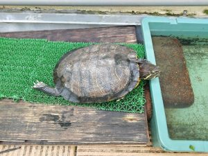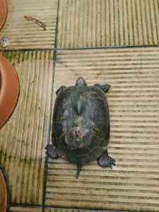 さて、中庭では忍ちゃんがプールに入ろうかな。