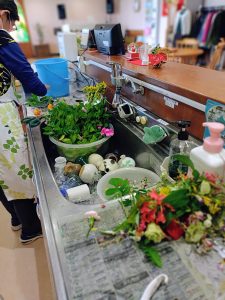 メラレウカ、カラー、ケイトウ、スプレー菊、スイトピー