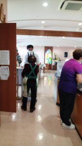 一時に出向くと朝からのMさんが帰る所でした。廊下のニッチもすっかり普段通り 午後ボラ二人