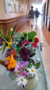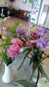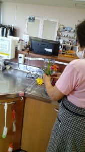 Sコーディは中庭手入れ、T二人でお花を活けて配って、「明るくなって嬉しい」とケースワーカーさんが患者さんの言葉を