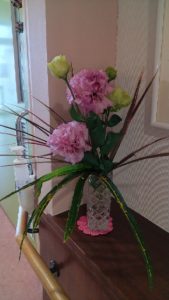 Sコーディは中庭手入れ、T二人でお花を活けて配って、「明るくなって嬉しい」とケースワーカーさんが患者さんの言葉を