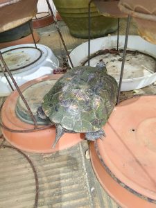 さて、中庭では、暑いのに泳がない忍ちゃん。