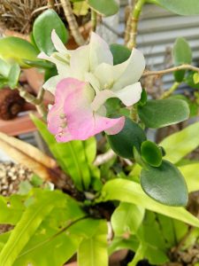 スイトピーのようなブーゲンビレア、控え目で、可憐です。