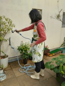 水を撒くSさんの顔出しOKが出ました!