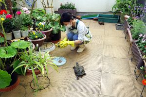 掃除の後はカメさんに、これでよいか確認しています。(?)