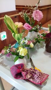 患者さんは寝てる方がほとんど、起きてる方にはいつも通り声かけ、お花二つ置いてという方、どこからこんなに沢山のお花持ってくるんですか、うれしいけどという方それぞれ、