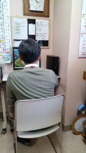 ずっと男性の後姿が‥ボラ室にパソコンが入るみたいです。Iさんお疲れ様。四時帰りました