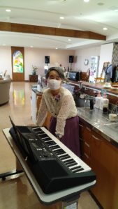 静かにしててほしいとの患者さんの声に、歌なしでkb演奏のみとしました。
