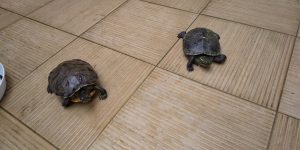 中庭では、何だか嬉しそうな亀が。