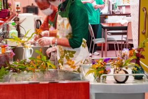 いつもの消毒が終わって花の入れ換えです。